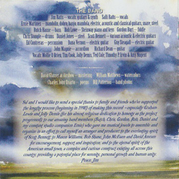 Water colors by William Matthews Poems by John Charles Quarto Band photos by Bill Patterson Produced and engineered by Jim Ratts Mastered by David Glasser at Airshow |