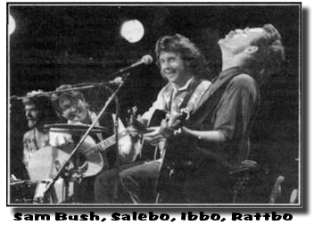 with his electrifying mandolin and fiddle work. In 1993 Wild Jimbos recorded their second album, cleverly called Wild Jimbos II, produced by Jim Ratts. Since that time they've kept a low profile making occasional appearances to re-inspect that old Wild Jimbo connection. They've resurfaced on the new Runaway Express Buddy Holly album, "Yeah, Buddy!" singing two of the songs. Besides the Wild Jimbos performances on "Yeah, Buddy!" limited numbers of their other two albums are still available through this web site. Go to the Discs page. Wild Jimbos take their light-heartedness seriously. |